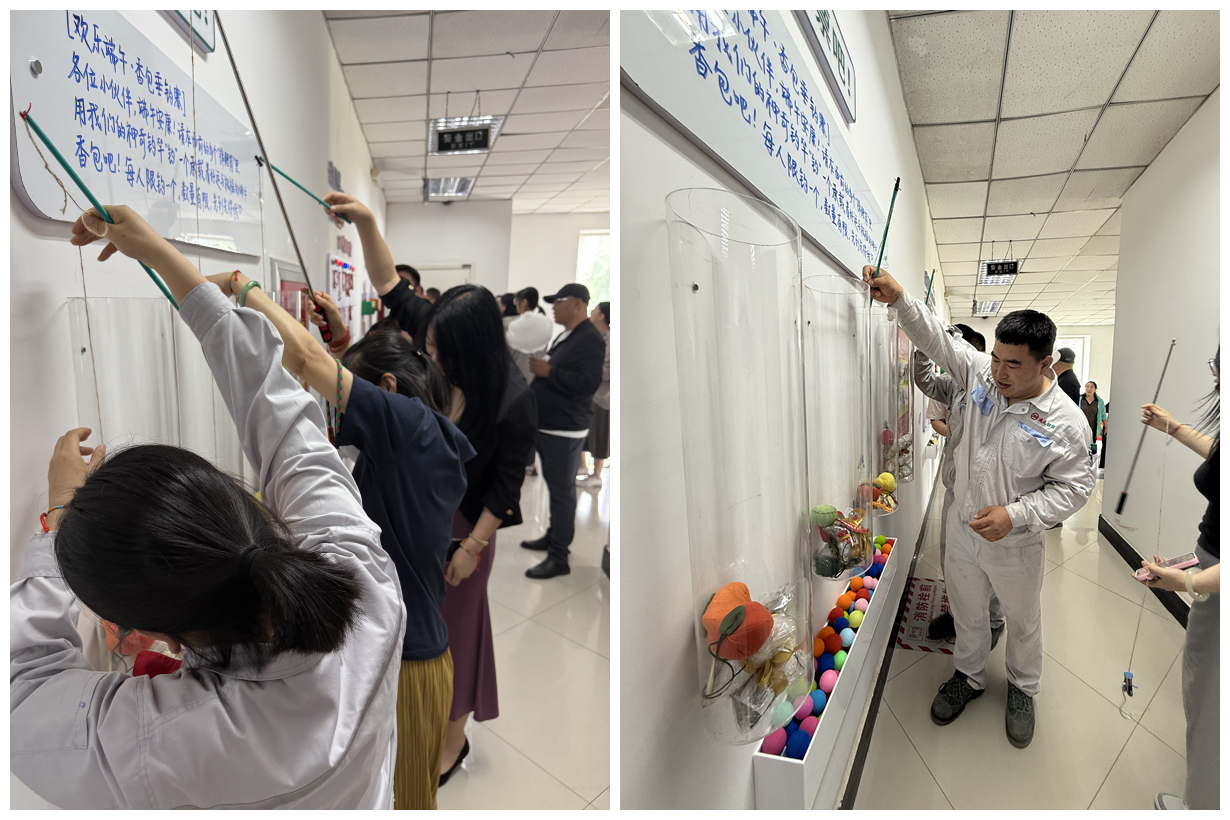 活動伊始,精心布置的互動墻便成為焦點(diǎn)。大家興致勃勃地領(lǐng)取端午手串,多種款式讓大家目不暇接,盛滿節(jié)日祝福;釣香包趣味盎然,靈巧的釣竿下,一個個承載著傳統(tǒng)韻味的香囊被成功“捕獲”,現(xiàn)場笑聲不斷。甜蜜的粽子糖,食堂美味的粽子,瞬間喚醒了記憶深處的端午滋味。